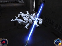 Game Star Wars: Jedi Knight kweli kubadilishwa, mara moja katika mikono ya mhusika mkuu misses lightsaber kupambana na badala Blaster. Kutakuwa na kasi kuamua na mvuke inapita, graceful harakati lakini hata umakini kuwanyima faida katika kiasi mno kundi adui. Haya yote ni akiongozana na flips gorgeous na somersaults, tumbling mchanganyiko na umeme mgomo. Ujuzi mhusika mkuu kukua katika mchezo na idadi ya beats inapatikana, tricks na somersaults acrobatic pamoja naye. Ikilinganishwa na sehemu ya kwanza ya mfumo kwa ajili ya kukusanya chembe kutoweka Forces ya maiti ya adui kuanguka, sasa Kyle unaweza yenyewe kuzalisha nishati, ambayo ni muhimu kwa muda wa kutumia ujuzi wao. kupambana kusisimua zaidi itakuwa kusubiri kwa ajili yenu katika vita na Jedi waasi, hivyo si kutumia nguvu zote katika vita na stormtroopers rahisi.